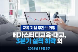 [교육 기업 주간 브리핑] 2025년 11월 2주 - 메가스터디교육·대교, 3분기 실적 하락 외